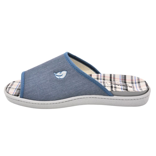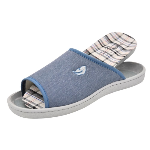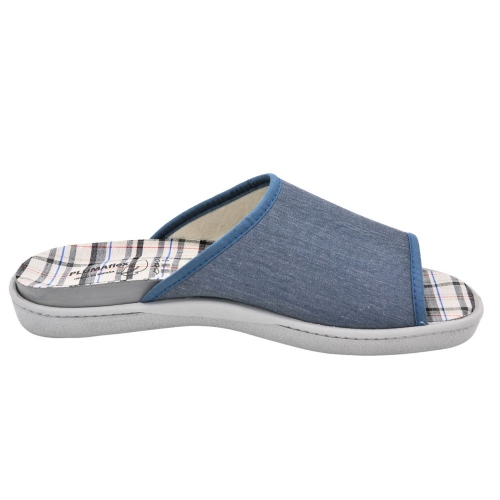 Zapatillas de casa modelo R12451 en color Jeans. Fabricado en algodón con plantilla y forro extraíble, la plantilla tiene un tratamiento antibacterias y de eucalipto. Plantilla de memory foam, zapatilla descalza con suela PVC cómoda.