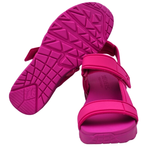 Recibe la estación cálida con estilo gracias a Skechers Uno - Fun Stand. Estas sandalias con correa en forma de T se inspiran en nuestro emblemático modelo Uno y presentan una parte superior sintética de durabuck con una correa ajustable en el talón. Este modelo también incorpora amortiguación Yoga Foam® y una media suela con cámara de aire visible Skech-Air®.