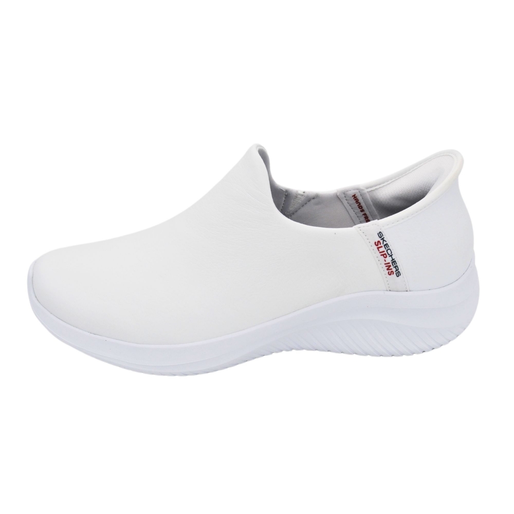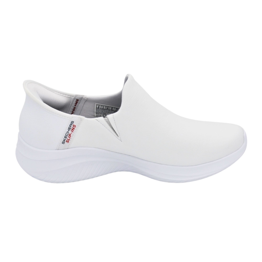 Disfruta de la comodidad sencilla de Skechers Hands Free Slip-ins®: Ultra Flex 3.0 - All Smooth. Diseñado con nuestra exclusiva tecnología Heel Pillow™, este modelo sin cordones presenta una parte superior de piel y ribete de malla, así como una plantilla con amortiguación Skechers Air-Cooled Memory Foam®.