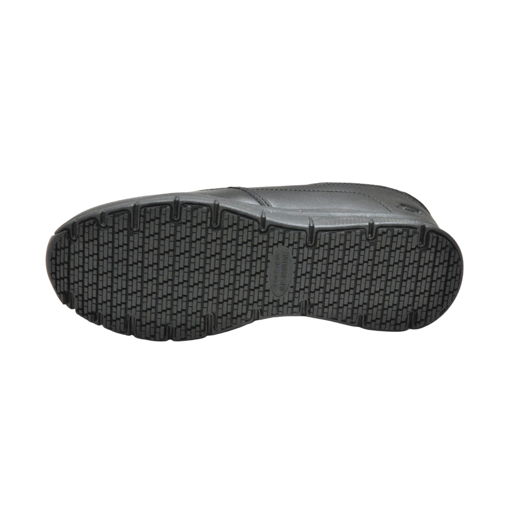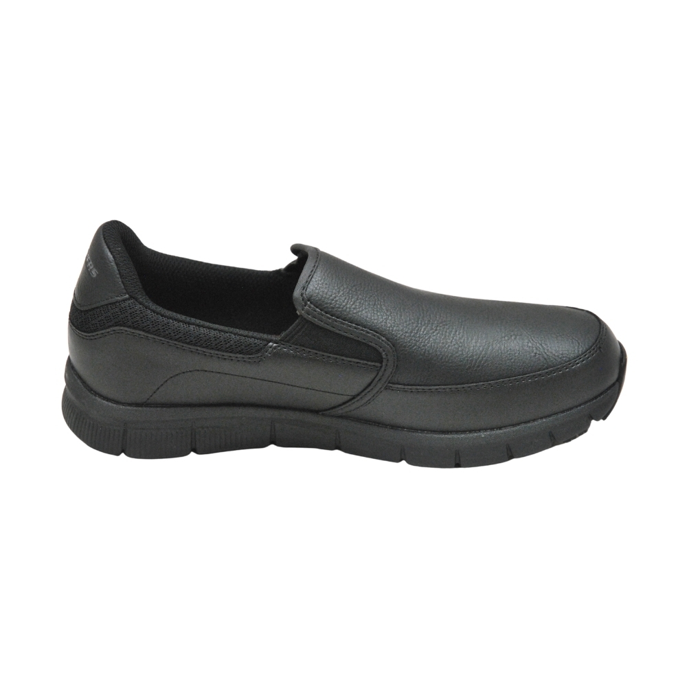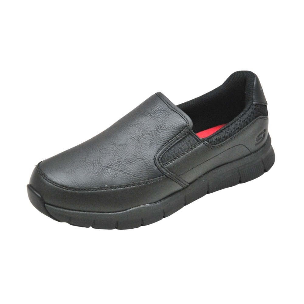 Trabaja de forma más inteligente y cómoda con el calzado Skechers Work Relaxed Fit®: Nampa - Groton SR. Esta zapatilla antideslizante cuenta con una parte superior sintética suave sin cordones con plantilla acolchada de espuma viscoelástica.