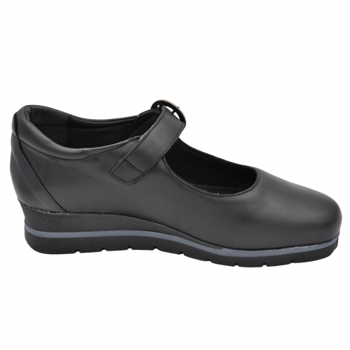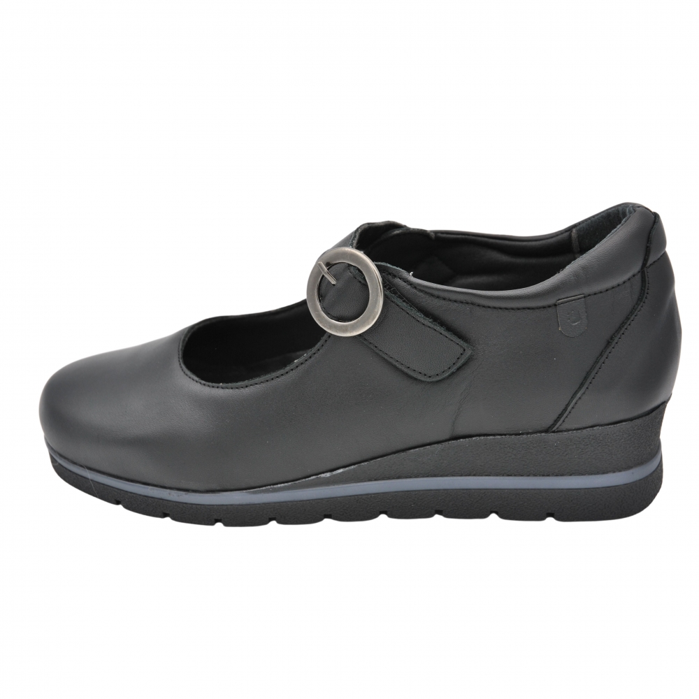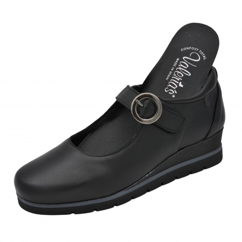 Zapato de mujer de la firma española Valeria’s Modelo 1527 en color negro, fabricado en piel de alta calidad. Cuenta con plantilla extraíble, sustituible por plantilla ortopédica, este modelo es perfecto para añadir un toque clásico, cómodo y elegante a tu colección.
