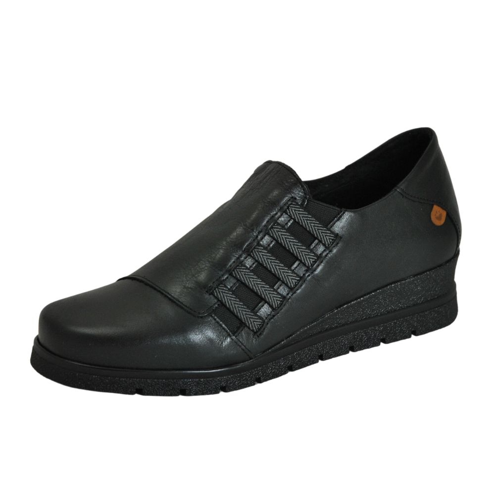 Zapato de plantilla extraíble. Fabricado en pieles de primera calidad, con forros en micro-foam, suela de látex, plantilla memory-foam y cordones elásticos para una mayor comodidad. Este conjunto de materiales le otorga la máxima suavidad y adaptabilidad, que junto a la plantilla extraíble autoadaptable garantiza el máximo confort, la suela antideslizante creada para conseguir la mayor absorción del impacto de la pisada y su horma especial de gran capacidad y anchura, hace de este calzado el ideal para ir cómodos y a la moda.